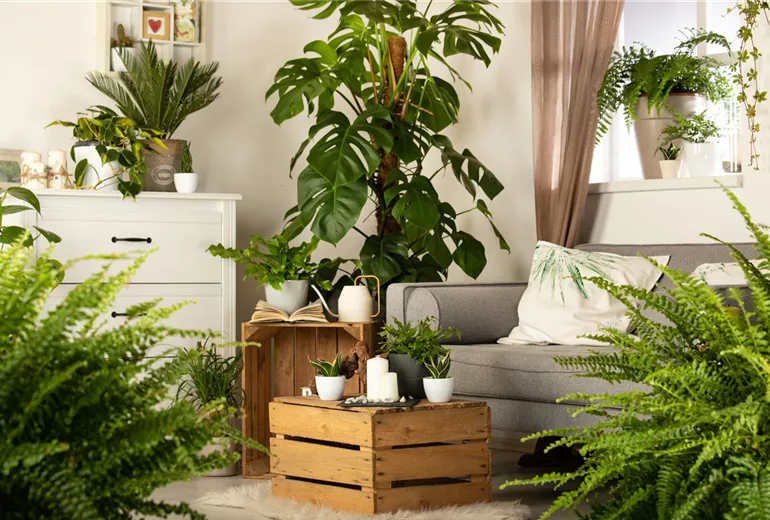 Zimmerpflanzen sind nicht nur sehr dekorativ, sie verbessern auch das Raumklima, reinigen die Luft und machen ein Zimmer gleich viel wohnlicher. Wer die richtigen Zimmerpflanzen miteinander kombiniert, verwandelt sein Wohnzimmer in einen kleinen Dschungel.