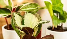 Die Korbmarante (Calathea) ist eine Pflanze mit dekorativen, mehrfarbigen Blättern. Sie sind eiförmig und gewellt. Bevorzugt wird ein halbschattiger Standort.